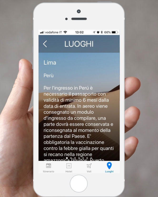 Cosa è TripGate TripGate è un applicazione interattiva per avere a portata di mano tutte le informazioni relative al proprio viaggio. Il Tour Operator o l’Agenzia di Viaggi possono caricare una qualsiasi pratica su questo sistema, che la mette a disposizione del cliente tramite un app. Quando il cliente sarà in viaggio questa app gli permetterà di consultare informazioni utili, avere degli scadenzari (domani hai il volo!) e acquistare servizi aggiuntivi. L'App per i Viaggi a portata di Smartphone Itinerario completo sullo smartphone Acquisti on line in destinazione Condivisione esperienza di viaggio Assistenza clienti via App Documenti di viaggio Risparmio economico, scelta ecologica e maggiore utilità per i clienti Hotel Lista completa con indirizzi, mappa e contatti Voli Operativi, contatti compagnie e avvisi integrati Luoghi Informazioni sulle destinazioni e numeri utili Acquisti in destinazione Proponi e vendi servizi supplementari a i tuoi clienti già in viaggio Massimizza profitto Aumenta fino al 20% il valore delle tua pratica. Soddisfa il cliente Ogni cliente acquista servizi in viaggio senza il tuo aiuto Feedback e assistenza Crea un legame con i tuoi clienti Assistenza innovativa L'app è un nuovo strumento di comunicazione con il cliente in viaggo Fidelizzazione Raccogli questionari di gradimento e consolida un legame con il cliente Perchè TripGateUna grande opportunità TripGate permette di offrire ai propri clienti un servizio innovativo, ma anche di poter avere vantaggi molto concreti: Risparmio Economico I documenti di viaggio possono essere trasferiti in formato digitale al cliente senza bisogno di costose stampe (e spedizioni), con più informazioni e tutta una serie di automatismi. Nuove opportunità di vendita In viaggio i clienti sono maggiormente propensi ad acquistare e spesso lo fanno da soli, con l’app questo mercato può essere una tua nuova opportunità di guadagno, sia tramite proposte automatiche che l’app notifica al cliente, ma anche semplificandogli il modo di contattarti. Customer Care L’app è uno strumento di comunicazione, può richiedere un aiuto, un consiglio o può valutare i servizi e i prodotti che gli hai messo a disposizione, tutto questo permette di creare un legame che sarà la base di vendite future. Per tutti Integrare Trip Gate è semplice, per questo può essere utilizzato da tutti BackOffice Web Per chi vuole essere immediatamente operativo e non deve gestire un elevato numero di pratiche è sufficiente usare il nostro backoffice via web. Un sistema completo per caricare e interagire con il cliente da una web app completa e già pronta. API Professionali Per chi ha un proprio sistema informativo è possibile usare delle interfacce professionali (API) che garantiscono la comunicazione da e verso TripGate in modo automatico. Servizi accessori Crediamo che un prodotto perfetto non esista per questo offriamo anche la possibilità di realizzare delle personalizzazioni per poter adattare il sistema al vostro prodotto e al vostro mercato. Avviso: JavaScript è obbligatorio per questo contenuto. Sei curioso? Contattataci e ti racconteremo nel dettaglio il nostro prodotto, siamo sicuri che potrà essere una grande opportunità anche per te
